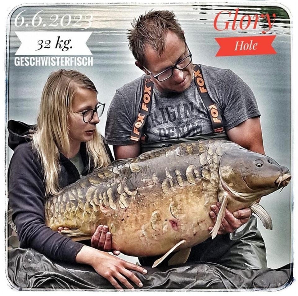 There is a magnificent stock of Monstercarp in the Glory-Hole Carplake, its hard to put a estimate on the total number of carp as we cant drain the lake. From 1995 onwards the owner has stocked carp in the lake. Looking at the results over the last couple of years we know that we have a big head of Monstercarp in the lake. Also we have stocked 25 heavily scaled carp al over 10 kg and some of them are already in the low 20 kg bracket.